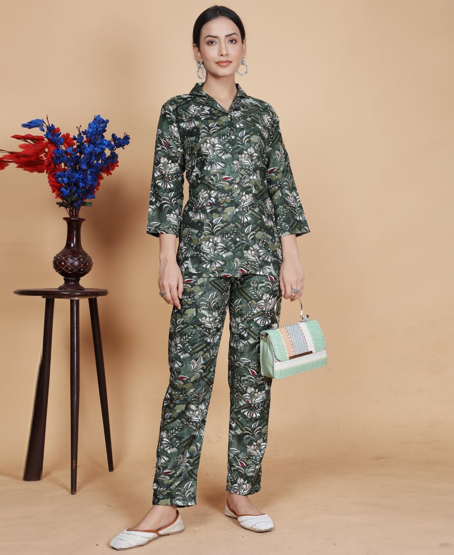 Elevate your casual style with this chic co-ord set, featuring an eye-catching print that exudes charm and individuality. Crafted from soft, breathable Twil Cotton fabric, it ensures all-day comfort without compromising on elegance. The thoughtfully designed bottoms come with a handy pocket, blending functionality with fashion. Whether you're heading out for brunch or a relaxed day with friends, this printed co-ord set is your go-to for effortless sophistication.