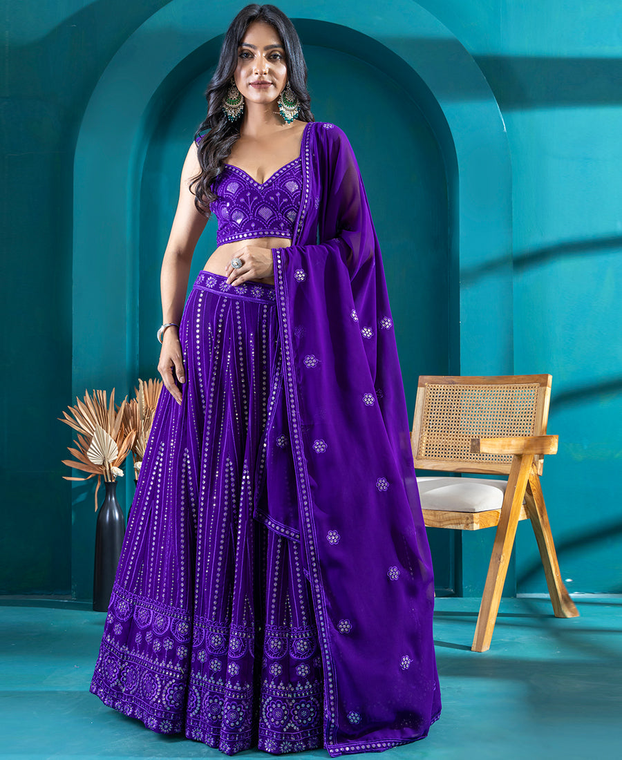 Lehenga: Georgette Fabric With Sequins Embroidery Work