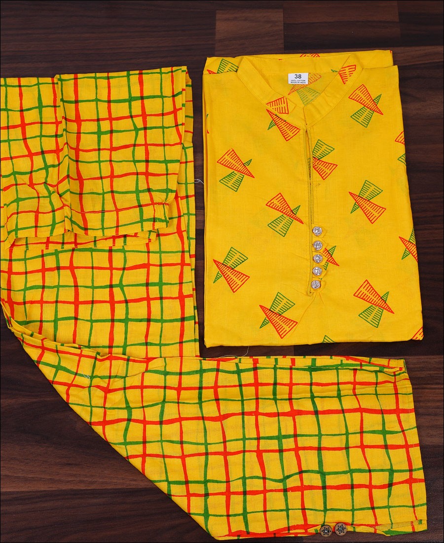 Create a smoldering impact by this Yellow color Kurti Beautified with Block Print. Readymade Kurti comes with a Top & Bottom. This stitched kurti is perfect to pick for party, weekend get-together, kitty parties and events. Pair it up with leggings, cigarette pants to create a contrasting effect, along with heels & stylish accessories.
