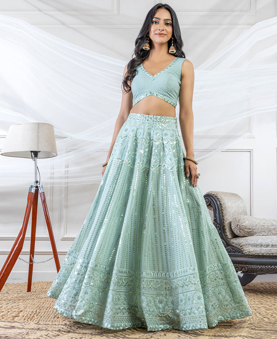 Lehenga: Georgette Fabric With Sequins Embroidery Work