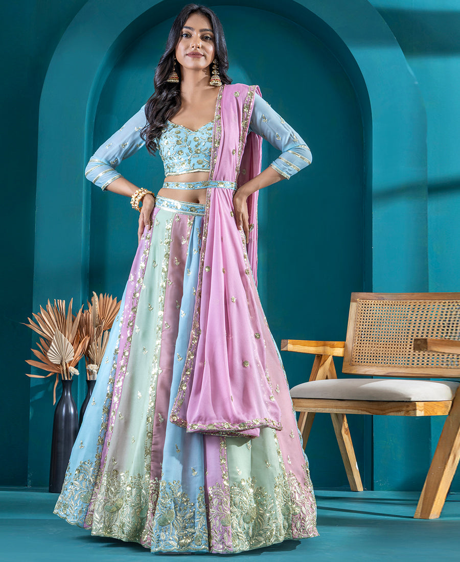 Multi color Georgette Sequins and Zari Work Lehenga Choli