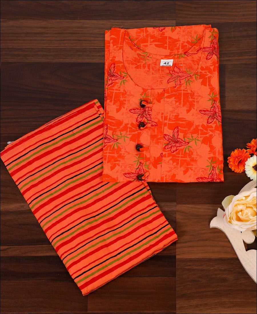 Brighten up your casual look for a weekend with this Orange color Kurti Beautified with Block Print. Readymade Kurti comes with a Top & Bottom. This stitched kurti is perfect to pick for party, weekend get-together, kitty parties and events. Pair it up with leggings, cigarette pants to create a contrasting effect, along with heels & stylish accessories.
