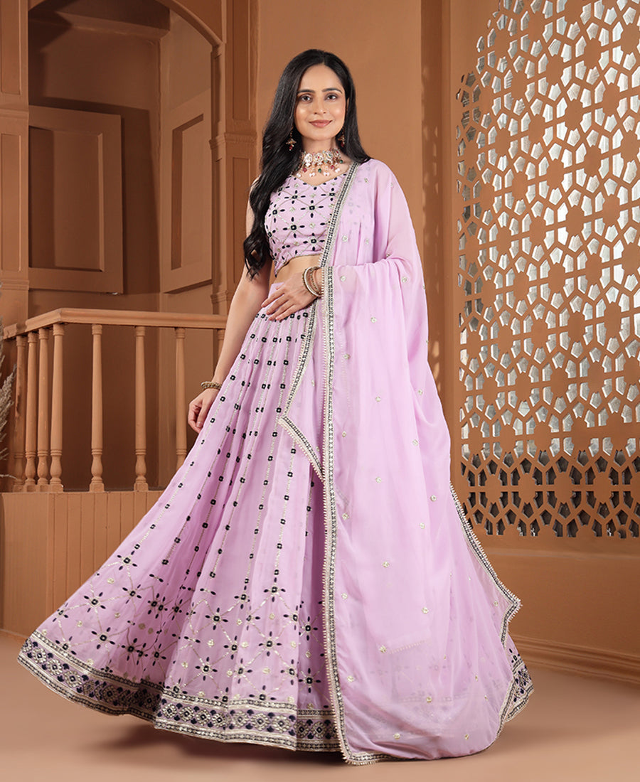 Oyster Pink Georgette Sequins Work Lehenga Choli