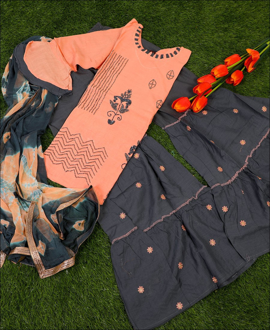 Create a smoldering impact by this peach color Kurti Beautified with zardoshi work. Readymade Kurti comes with embroidered Bottom and bandhani dupatta. This stitched kurti is perfect to pick for party, weekend get-together, kitty parties and events. Team it with high heels and fashionable accessories to look more attractive.