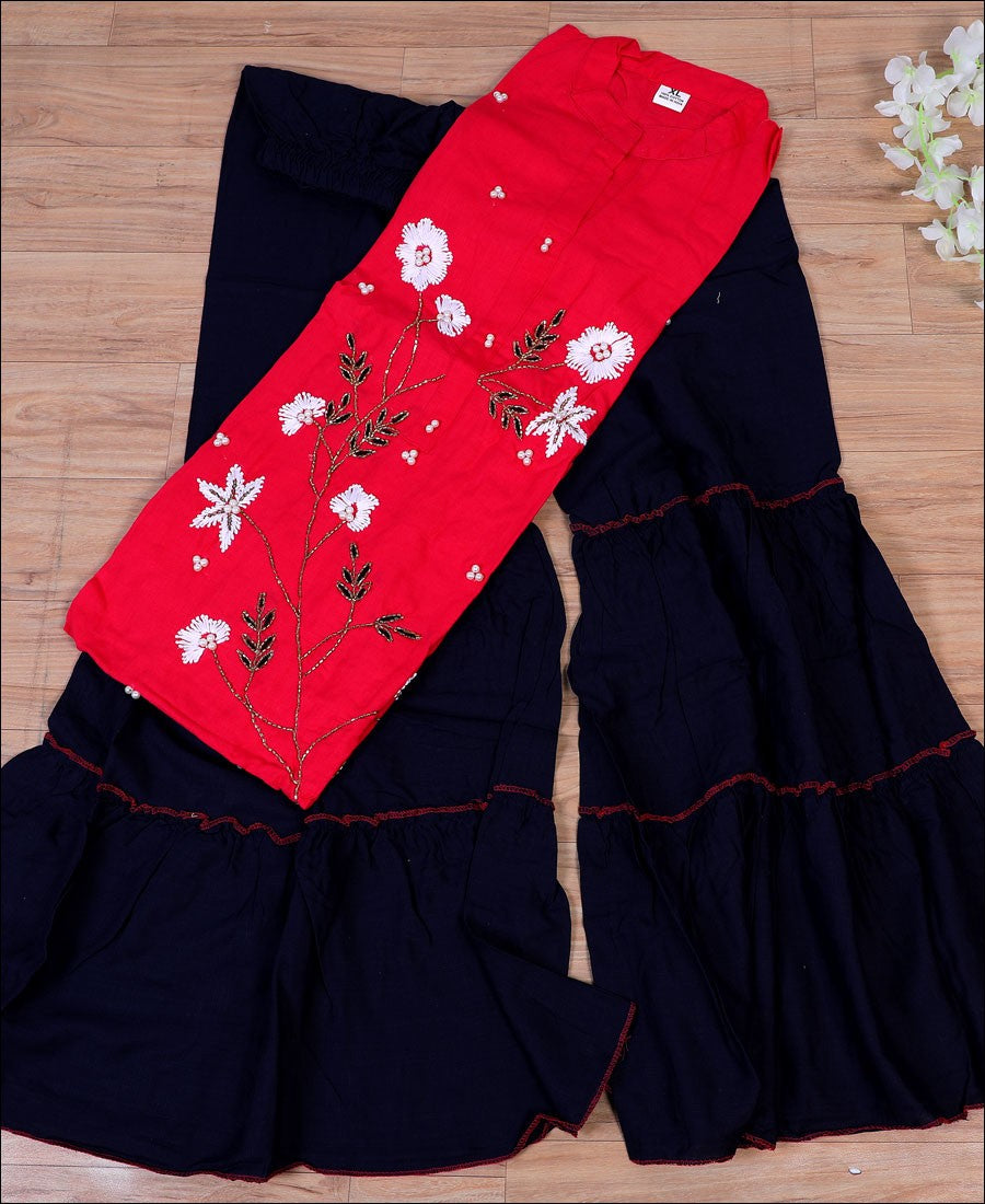 Be the dazzling diva clad in this Kurti Beautified with hand work.Readymade Kurti comes with Bottom. this stitched Kurti is perfect to pick for party, weekend get-together, kitty parties and events. Pair it with high heels and fashionable accessories to look more attractive.