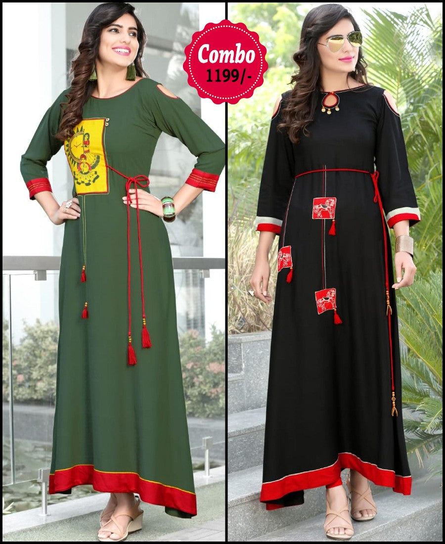 Look more attractive dressed up with these kurtis in combo pack of 2.Become an enchanting mystery in this delightful printed kurti.This ready to wear kurti is made from very soft and comfortable fabric which is assures the wearer a comfort.Ideal for casual outing,event & weekend get together. Team it with matching leggings, high heels and fashionable accessories to look more attractive.This attractive kurti will surely fetch you compliments for your rich sense of style.