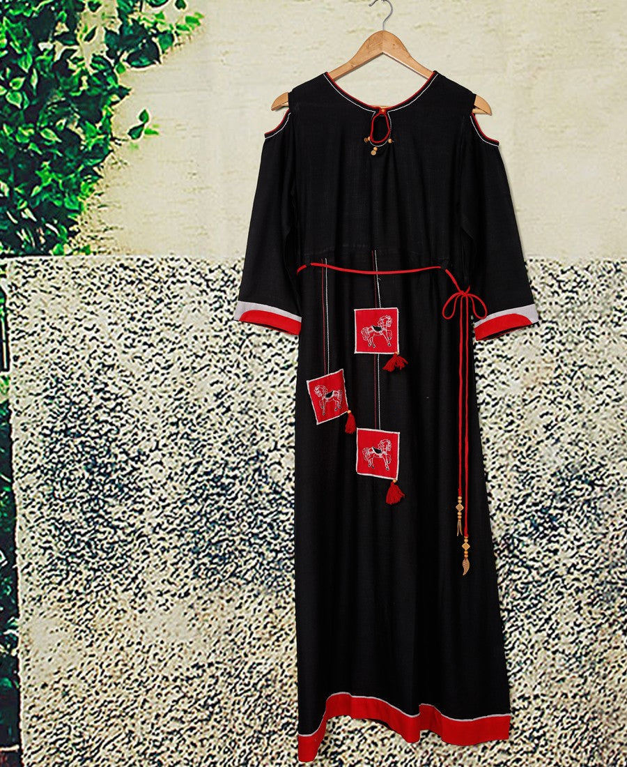 RE - Moiety Black slub rayon embellish stitch kurti