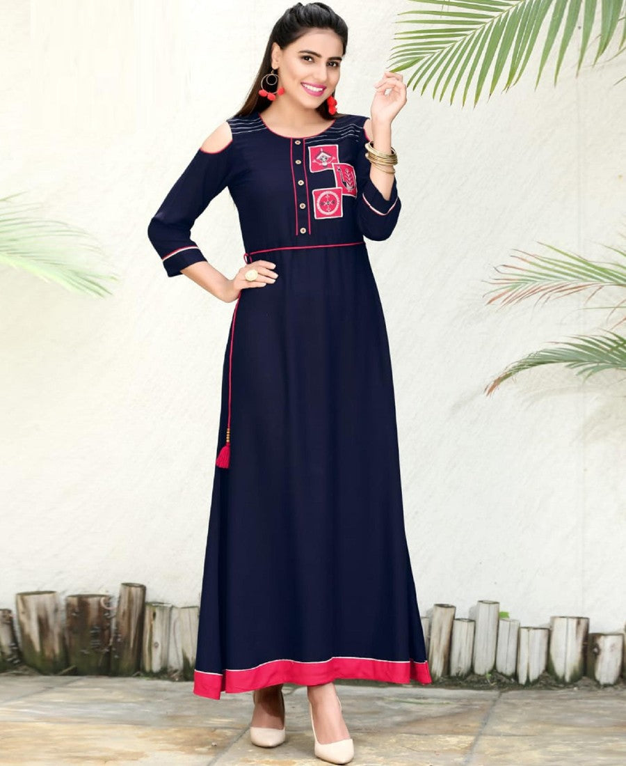 RE - Pleasant Navyblue slub rayon embellish stitch kurti