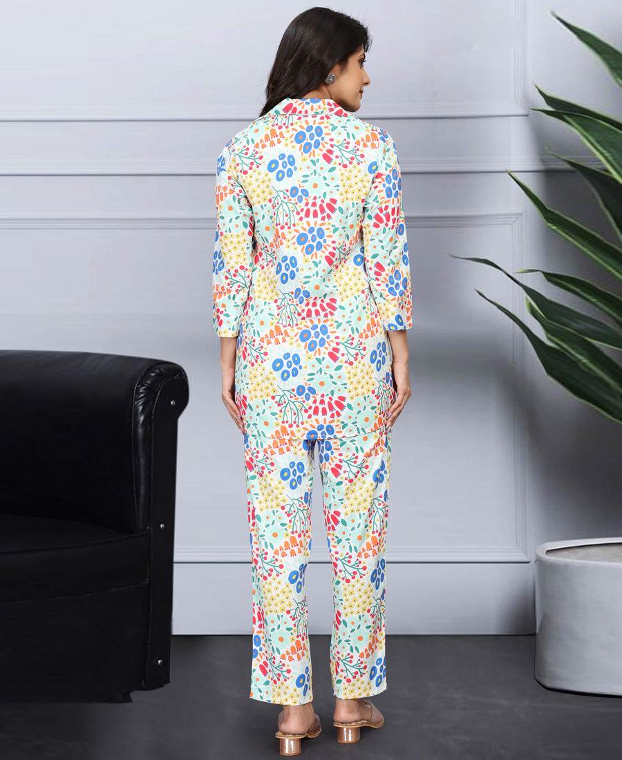 This classy co-ord set is perfect for casual outings, featuring an alluring print that adds a stylish flair. Crafted from soft, breathable Twil Cotton, it ensures comfort throughout the day. The bottoms come with a convenient pocket, combining practicality with effortless elegance. A touch of personality in every detail makes this set a must-have for your laid-back yet refined wardrobe.